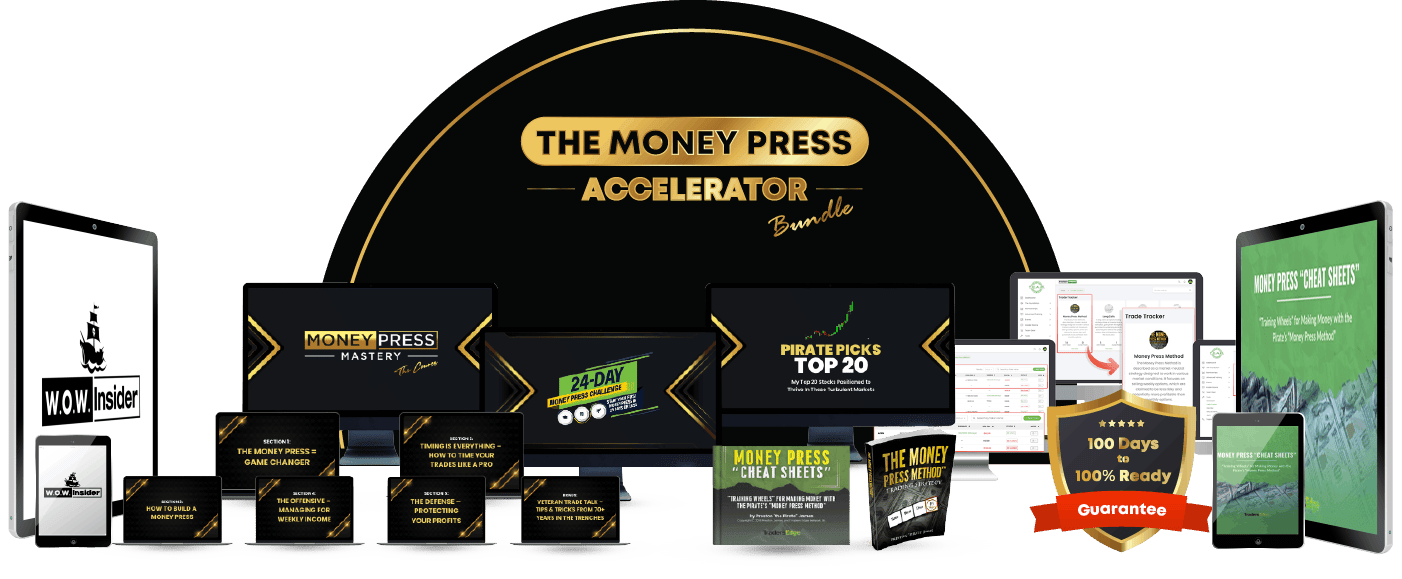 You were just offered the complete Money Press Accelerator Bundle — the fastest, most complete way to learn the strategy, start trading confidently, and cut your learning curve by months (or even years).